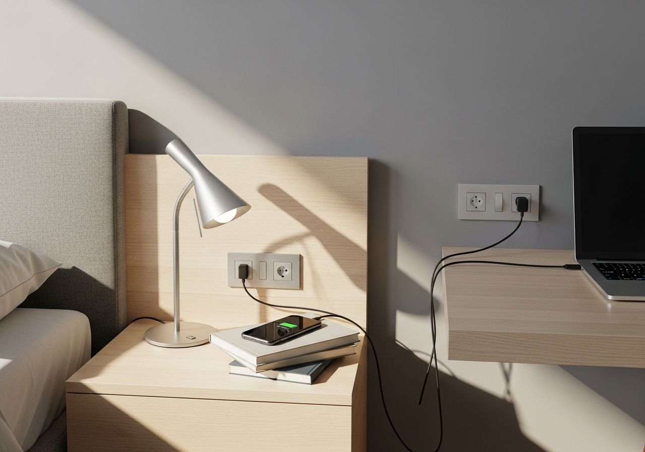 Funkcjonalne gniazdka elektryczne: jak zaplanować gniazdka przy biurku w sypialni?